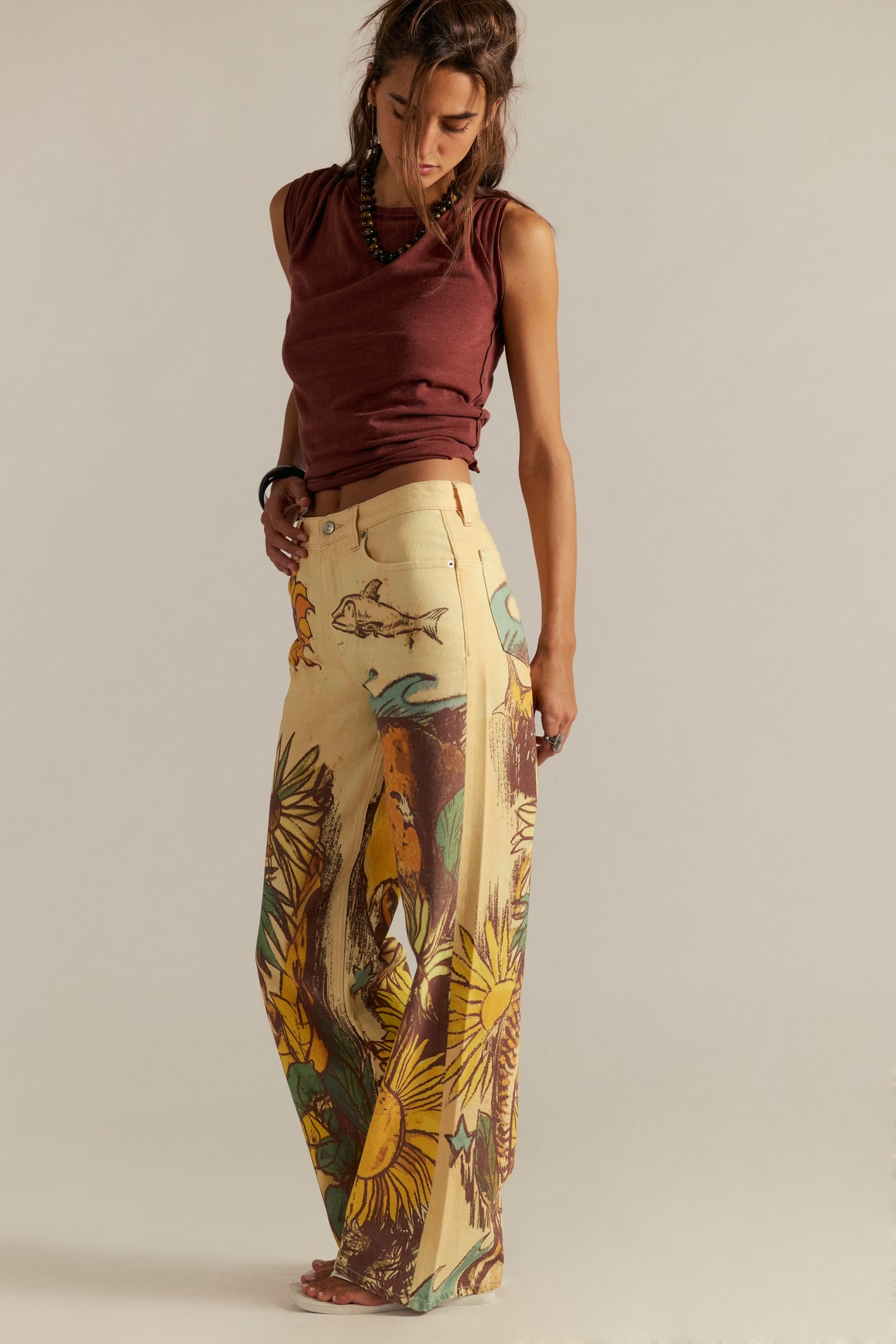 Free People We The Free Tinsley Printed Jeans/Beach Scene
