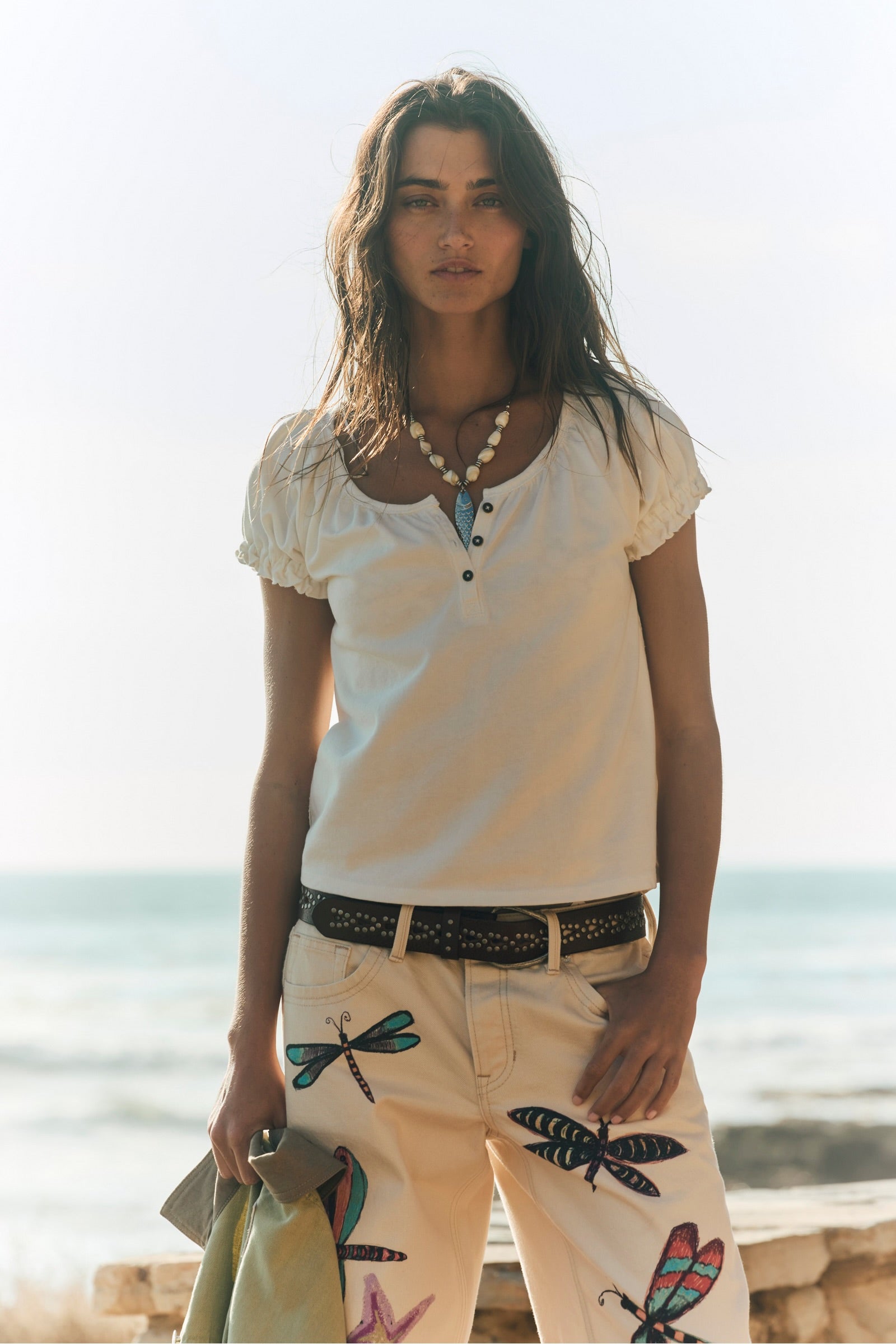 Free People We The Free Take Flight Embroidered Shirt/Snow Bell Combo