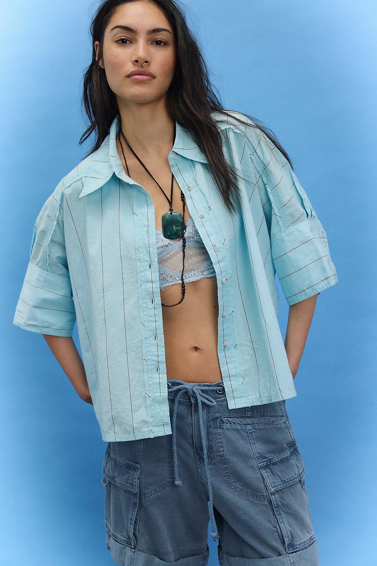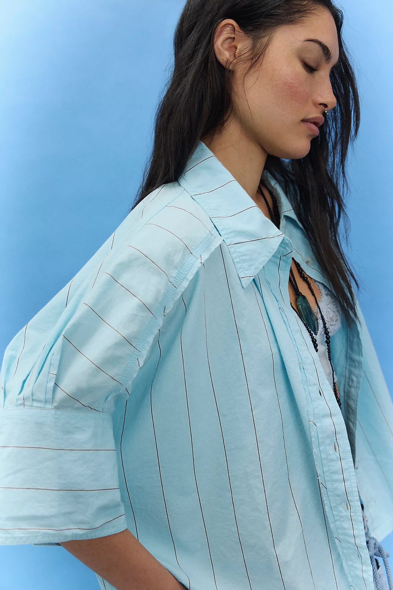 Free People We The Free Seaside Cotton Stripe Shirt/Sky Combo
